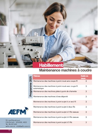 Programme 2025 55, rue Elbouhtouri Cité Erriadh - SOUSSE, 4023 Tél. 98.257.055 aefm.com.tn - info@aefm.com.tn 15